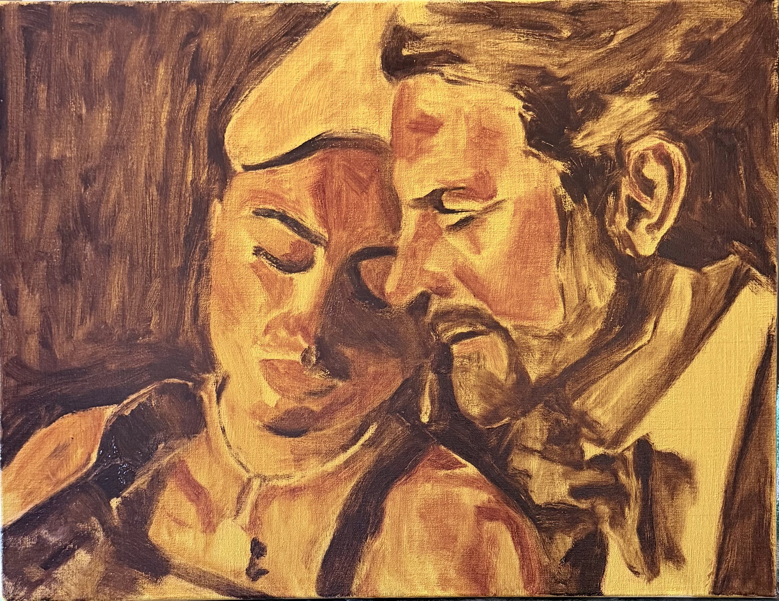 The canvas will be primed and the initial drawing underpainting will be completed. This will demonstrate that the initial brief on size and composition aligns with the request and will be shared with the client for feedback.